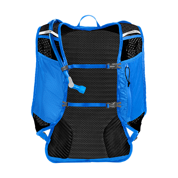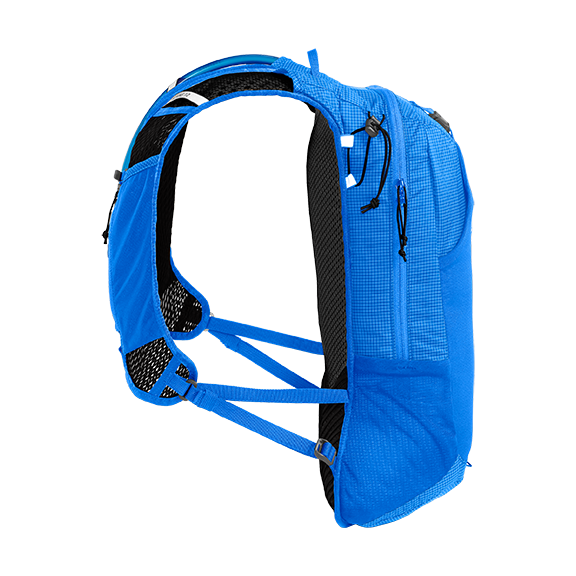 • Mesh-sidelommer – En romslig lomme for en vannflaske på ca. 0,95 L (32 oz) på den ene siden og en mindre vinklet lomme perfekt for energibarer eller næring på den andre.