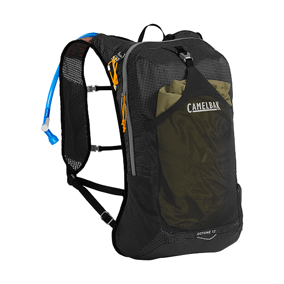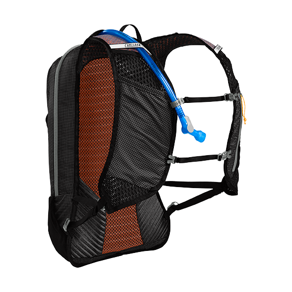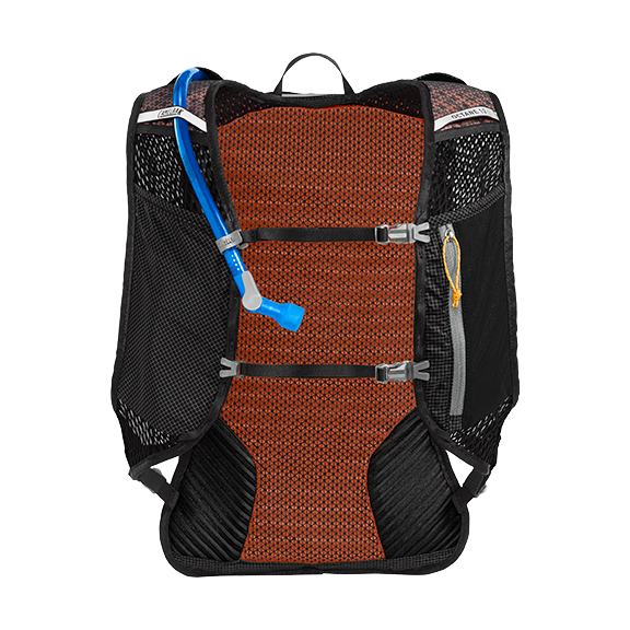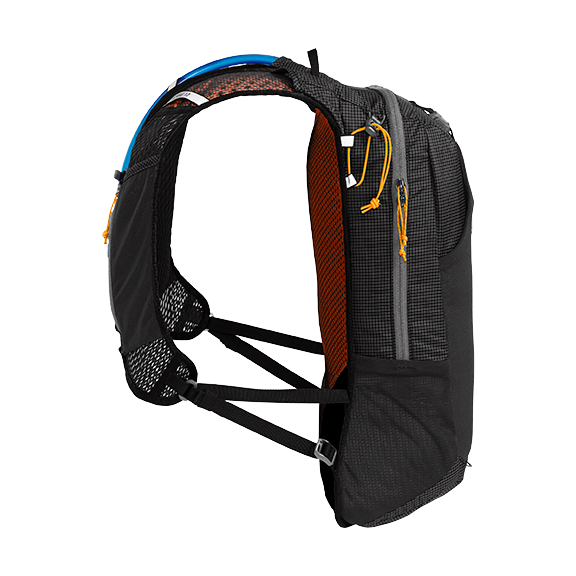 • Mesh-sidelommer – En romslig lomme for en vannflaske på ca. 0,95 L (32 oz) på den ene siden og en mindre vinklet lomme perfekt for energibarer eller næring på den andre.