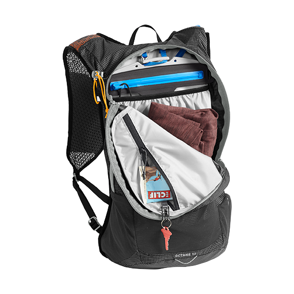 • Oppbevaring for energi og utstyr – Romslige lommer med enkel tilgang til væske, utstyr og andre nødvendigheter.